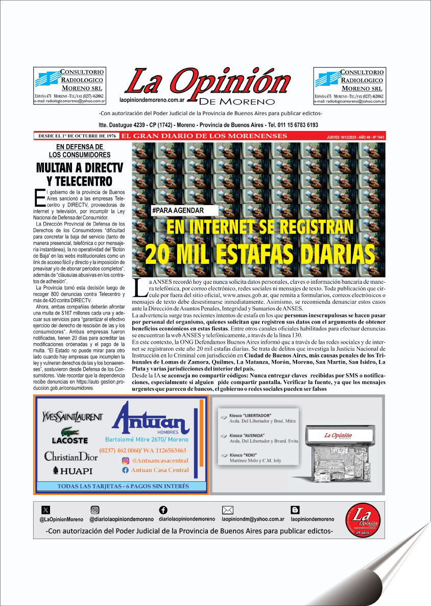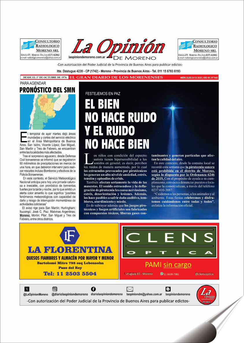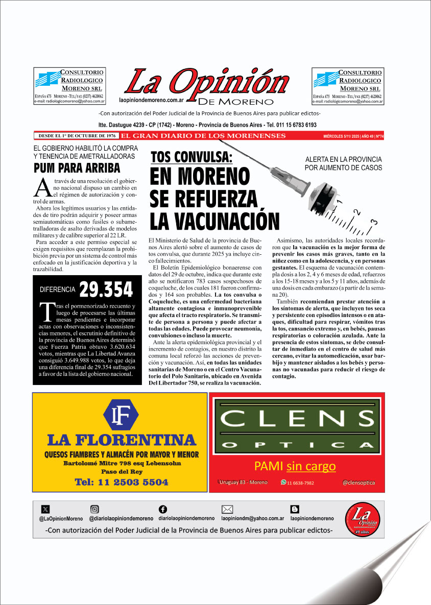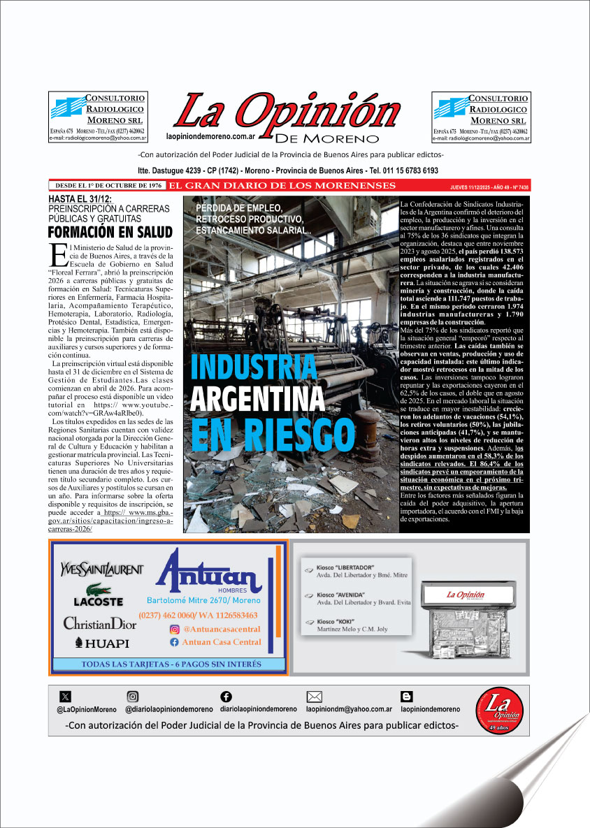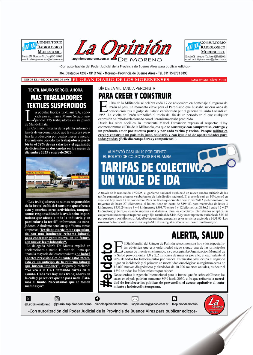 Desde el 1° de octubre de 1976EL GRAN DIARIO DE LOS MORENENSES Farmacias de turno Entrevistas La Opinión Espacio del lector Contactanos(011) 67836193laopiniondm@yahoo.com.ar