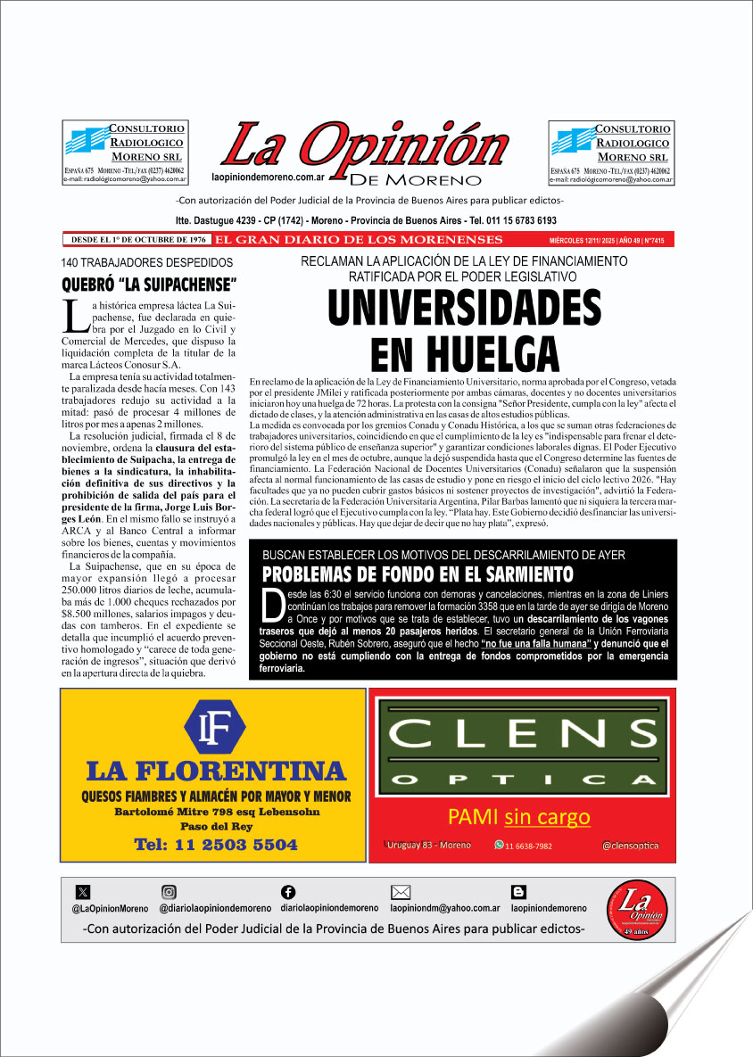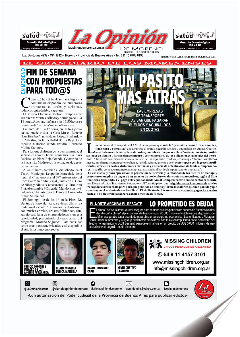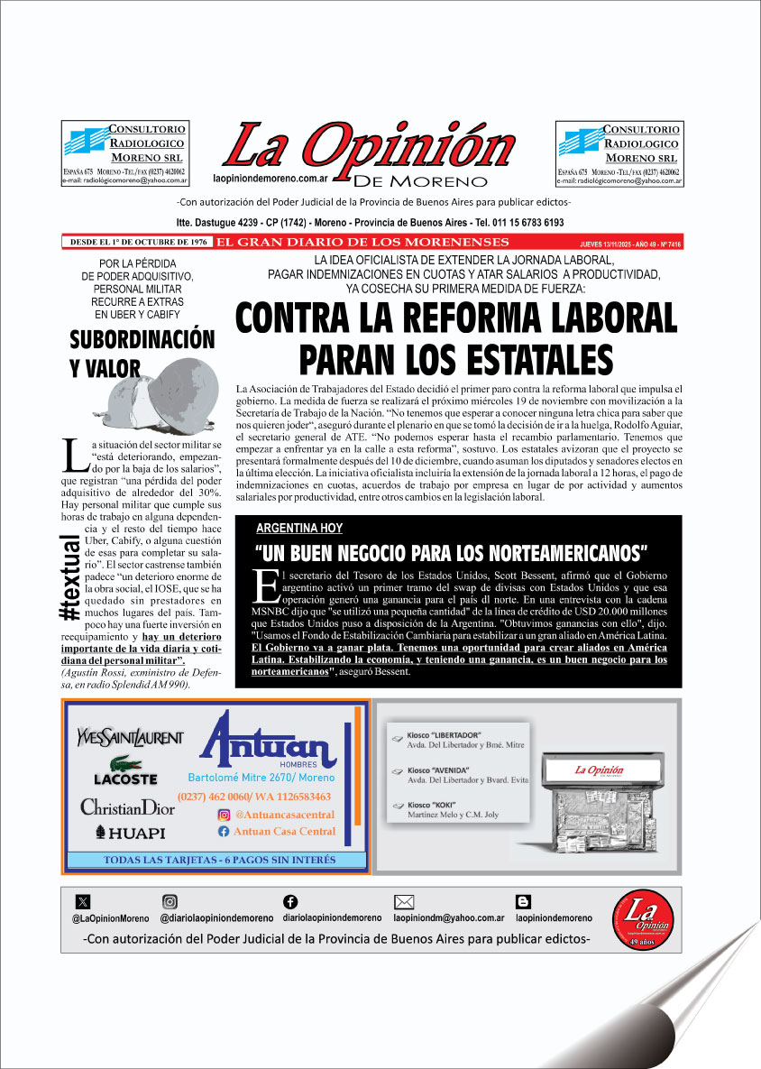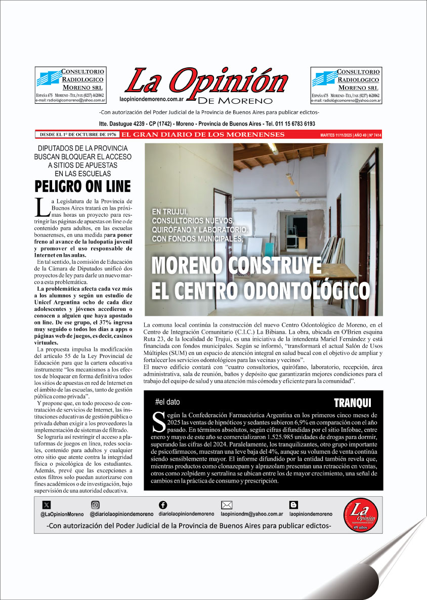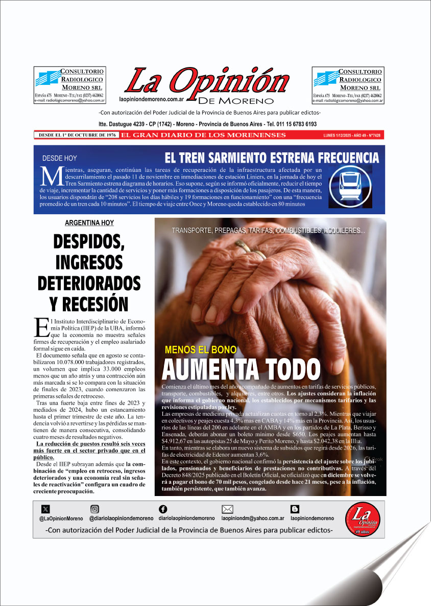 Desde el 1° de octubre de 1976EL GRAN DIARIO DE LOS MORENENSES Farmacias de turno Entrevistas La Opinión Espacio del lector Contactanos(011) 67836193laopiniondm@yahoo.com.ar