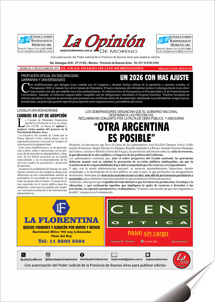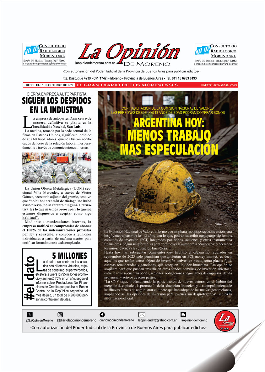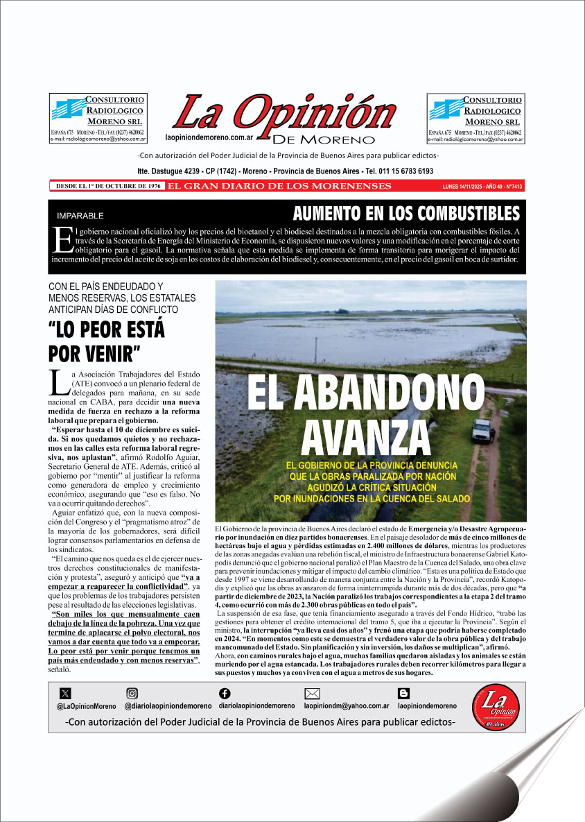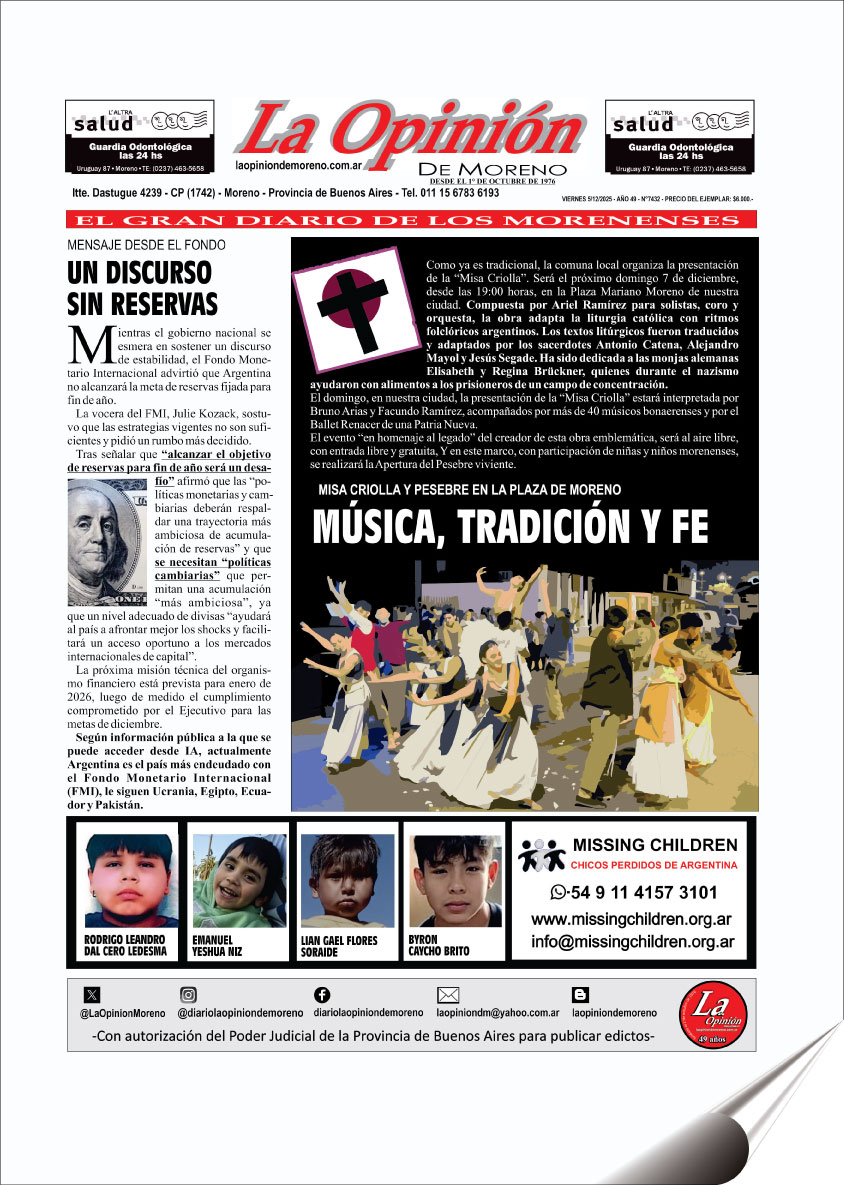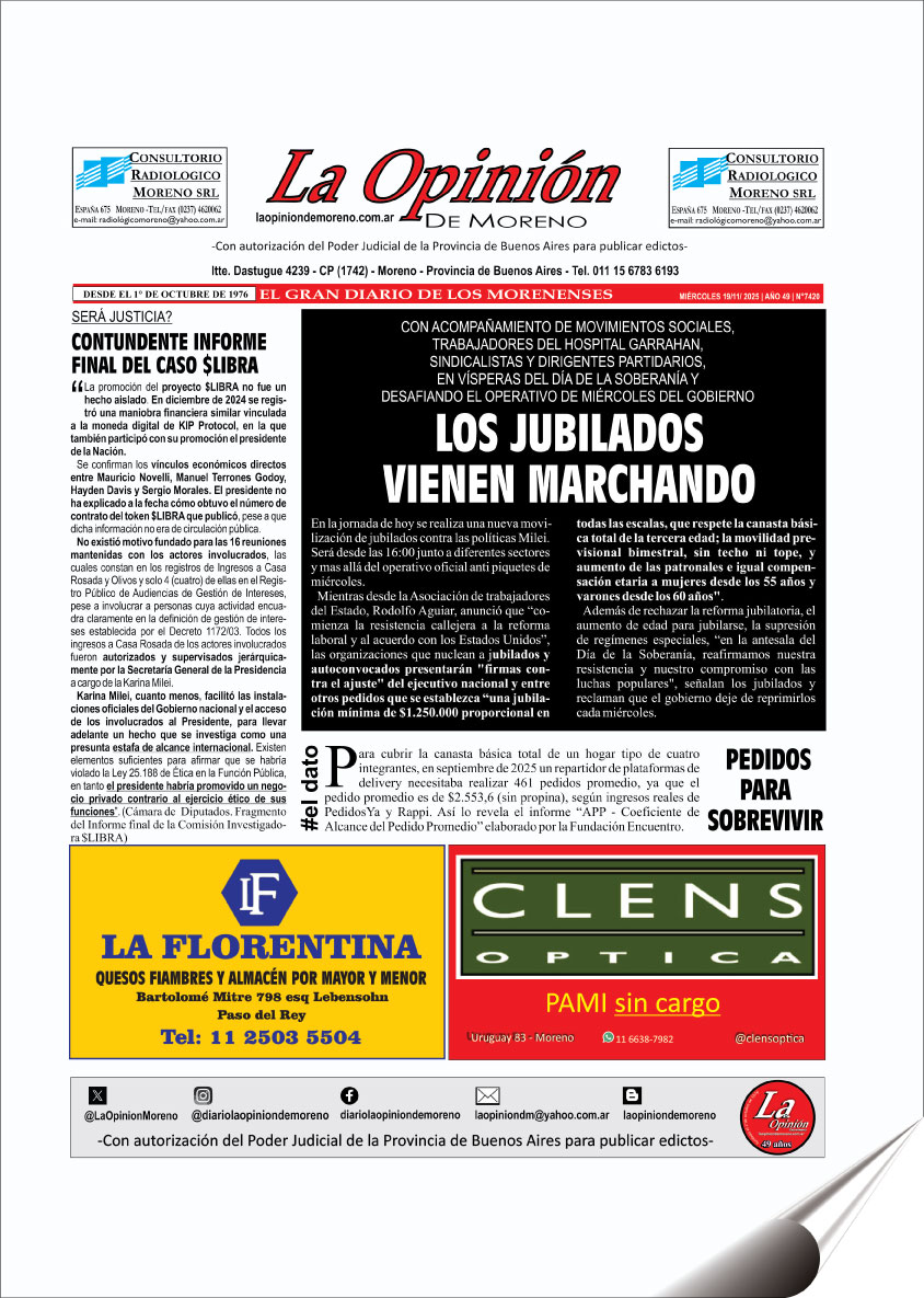 Desde el 1° de octubre de 1976EL GRAN DIARIO DE LOS MORENENSES Farmacias de turno Entrevistas La Opinión Espacio del lector Contactanos(011) 67836193laopiniondm@yahoo.com.ar