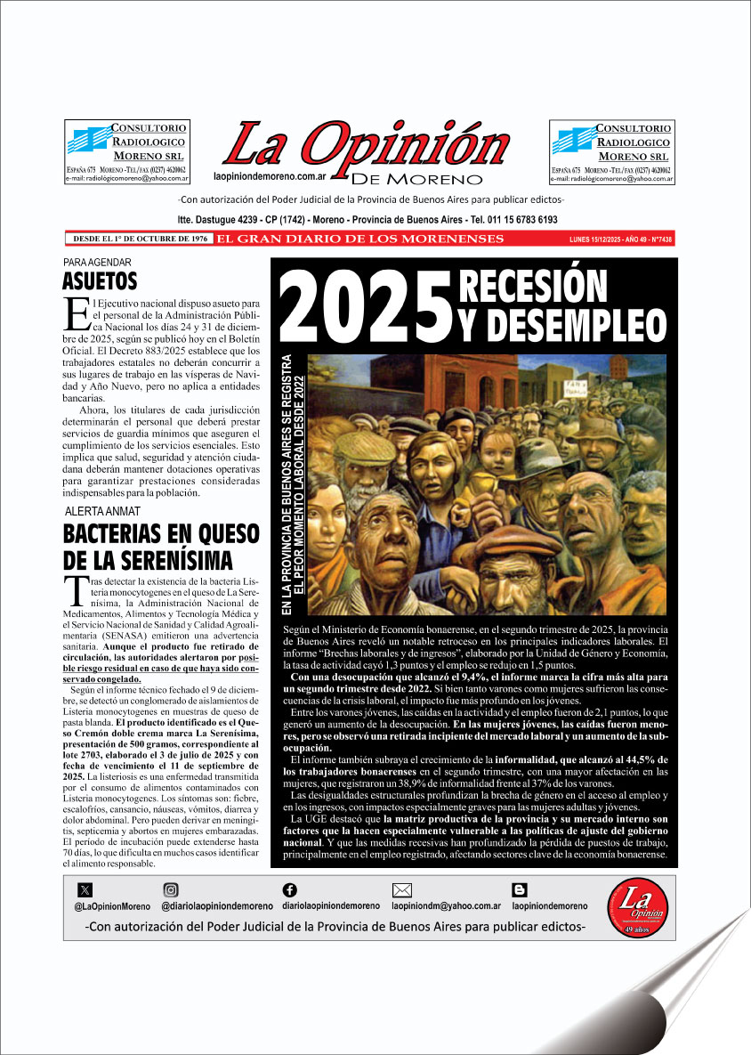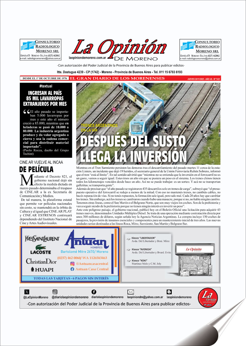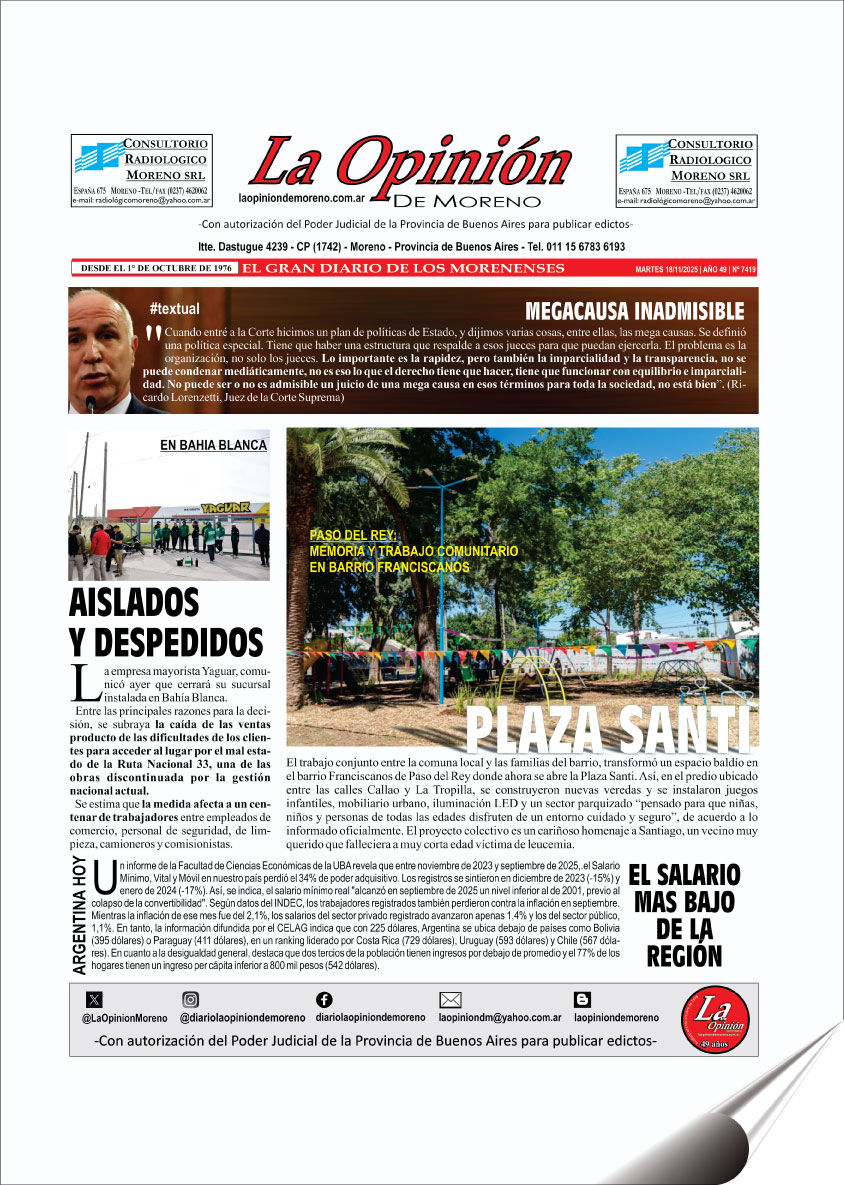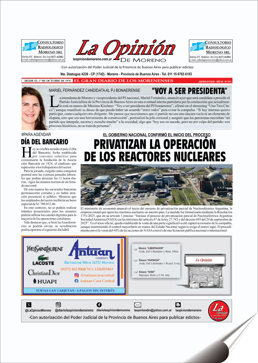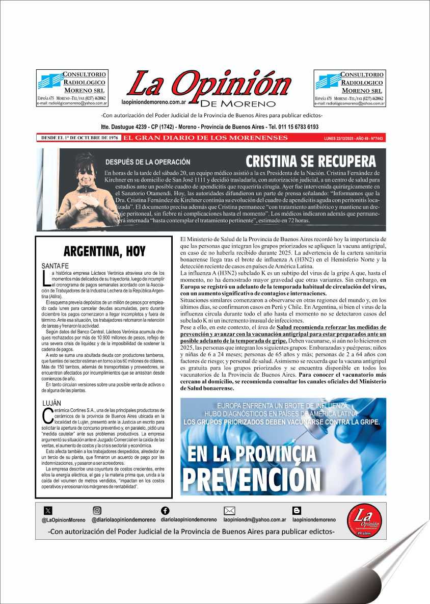 Desde el 1° de octubre de 1976EL GRAN DIARIO DE LOS MORENENSES Farmacias de turno Entrevistas La Opinión Espacio del lector Contactanos(011) 67836193laopiniondm@yahoo.com.ar