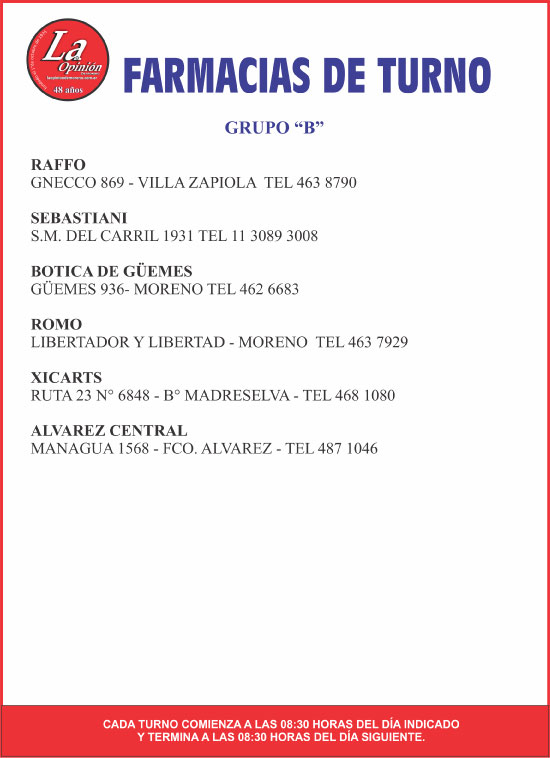 Farmacias de turno EL GRAN DIARIO DE LOS MORENENSES Farmacias de turno Entrevistas La Opinión Espacio del lector AÑO 202510 OCTUBRE11 OCTUBRE12 OCTUBRE13 OCTUBRE14 OCTUBRE15 OCTUBRE16 OCTUBRE17 OCTUBRE Contactanos(011) 67836193laopiniondm@yahoo.com.ar